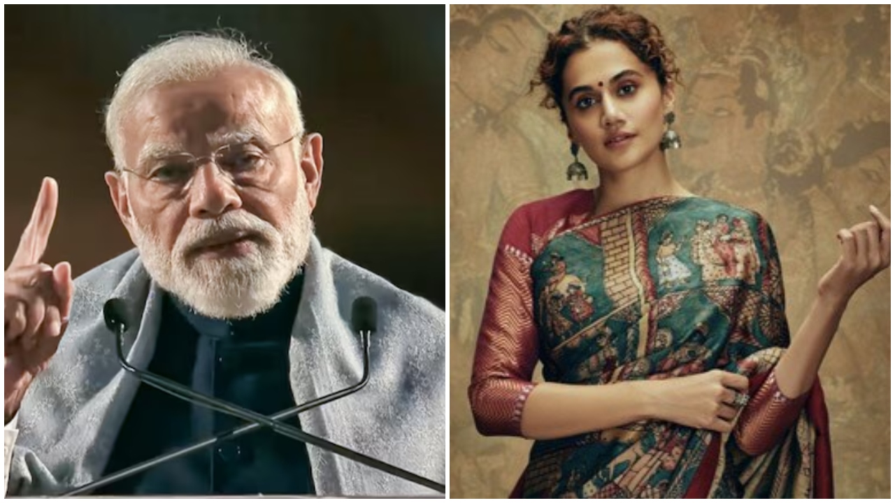 मुंबई: बॉलीवुड एक्ट्रेस तापसी पन्नू इन दिनों अपनी आगामी फिल्म के प्रमोशन में व्यस्त हैं. इसी दौरान एक न्यूज चैनल के शो में उनसे एक ऐसा सवाल पूछा गया, जिसने सोशल मीडिया पर हलचल मचा दी है. एंकर ने उन्हें दो तस्वीरें दिखाईं जिनमें एक तरफ नरेंद्र मोदी और दूसरी तरफ राहुल गांधी की फोटो थी. सवाल था कि आपका पसंदीदा राजनेता कौन है. इस पर तापसी ने पीएम मोदी की तस्वीर को प्रणाम किया और मुस्कुराते हुए कहा कि मुझे अभी भी इस देश में रहना है. उनका यह जवाब कुछ ही घंटों में वायरल हो गया.