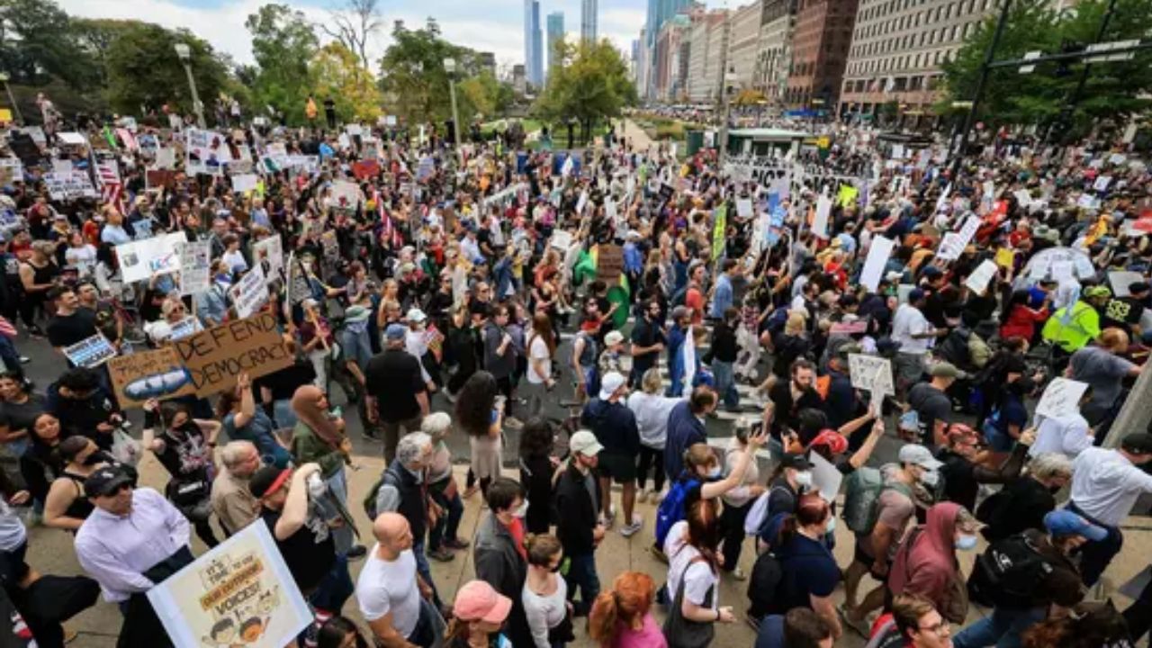 अमेरिका में ट्रंप प्रशासन के खिलाफ हजारों लोग सड़कों पर उतरे, ‘नो किंग्स’ रैली में उमड़ा जनसैलाब